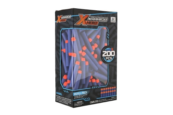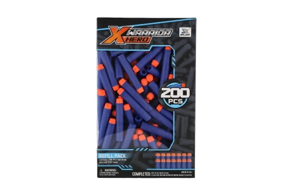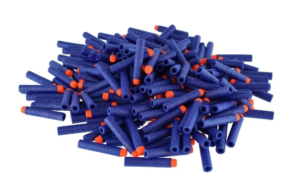 Papildykite atsargas savo blasterių kovoms: ši pakuotė siūlo 200 vnt. putų strėlių mėlynos spalvos su oranžiniu antgaliu geresniam matomumui. Strėlės pagamintos iš minkštų, patvarių putų, todėl tinka naudoti viduje ir lauke ir jas lengva rasti po veiksmo.