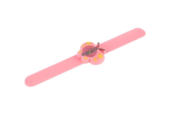 Laikrodis pagamintas iš švelnaus ir tvirto silikono, kuris malonus liesti ir gerai laikosi. Maitinimą užtikrina lengvai randama baterija LR626. Galima rinktis iš dviejų motyvų/variantų rožiniuose–violetiniuose tonuose su mielu drugeliu.