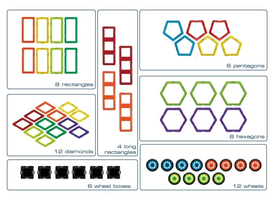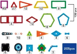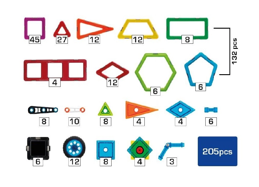 - 132 pagrindiniai magnetiniai elementai įvairių formų