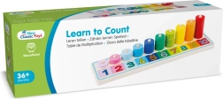 Vaikai turi susieti korteles su skaičiais su atitinkamu žiedų kiekiu ant kaištelių, o tai padeda lavinti jų loginį mąstymą.