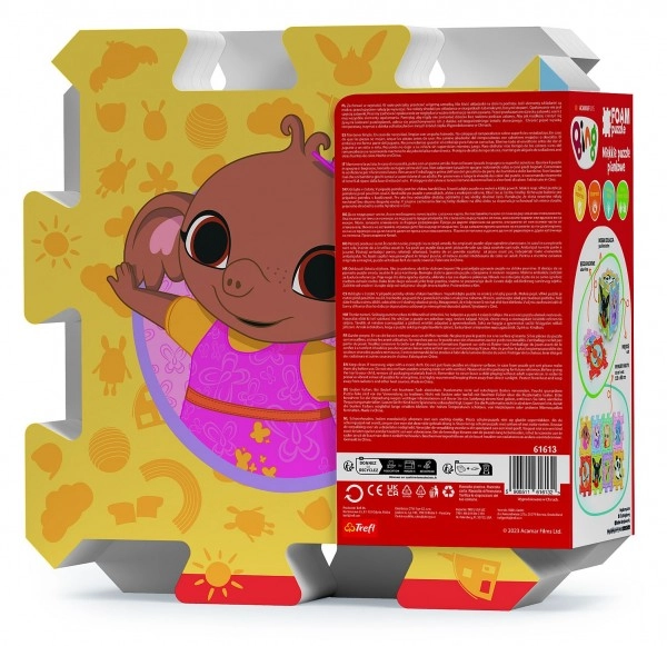 Putų dėlionė TRIUŠIUKAS BING ir draugai – ideali saugaus ir kūrybiško žaidimo namuose pasirinktis. Speciali medžiaga, primenanti storą turistinį kilimėlį, suteikia puikų amortizavimą ir komfortą. Dalys lengvos, patogiai nešiojamos ir po žaidimo greitai sutvarkomos.