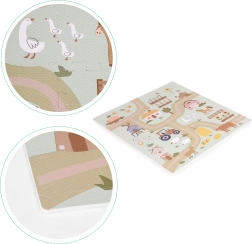 Atraskite universalų putų kilimėlį su fermos motyvu, kuris skatina kūrybišką žaidimą ir vaizduotės lavinimą. Malonus paviršius ir 1 cm storis suteiks vaikams komforto žaidžiant, ropojant ar ilsintis. Kilimėlis surenkamas kaip dėlionė, todėl lengvai pritaikysite erdvei ir sukursite įvairias formas.