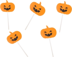 Pakuotėje yra penki moliūgų smeigtukai, kurie užteks mažesnei šventei arba papildys teminį saldumynų barą.