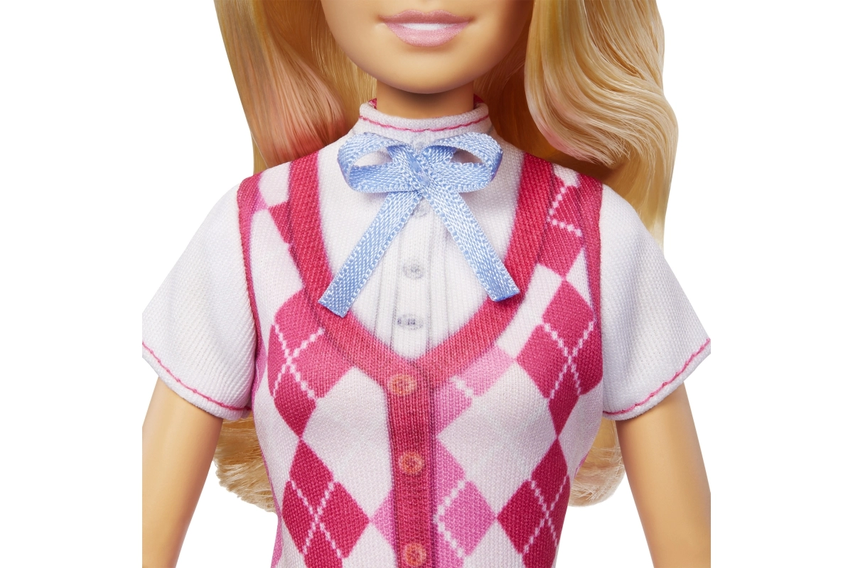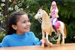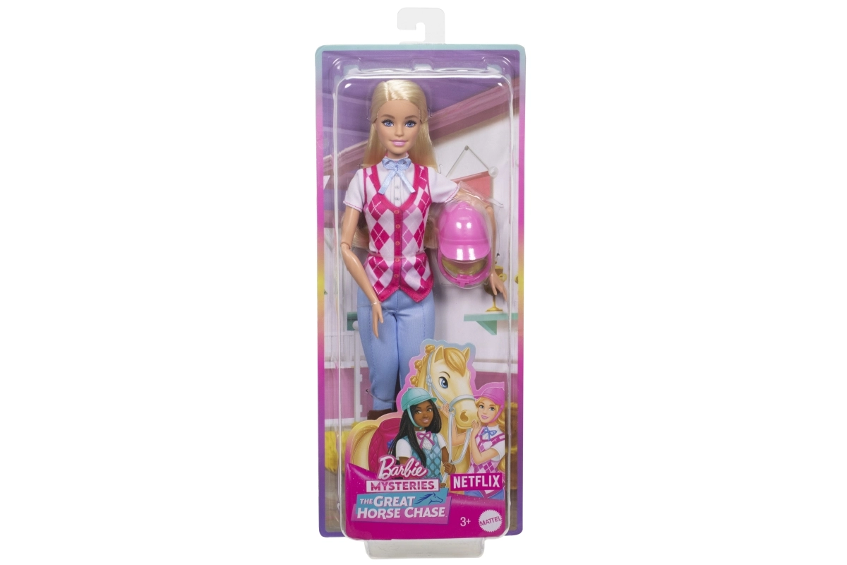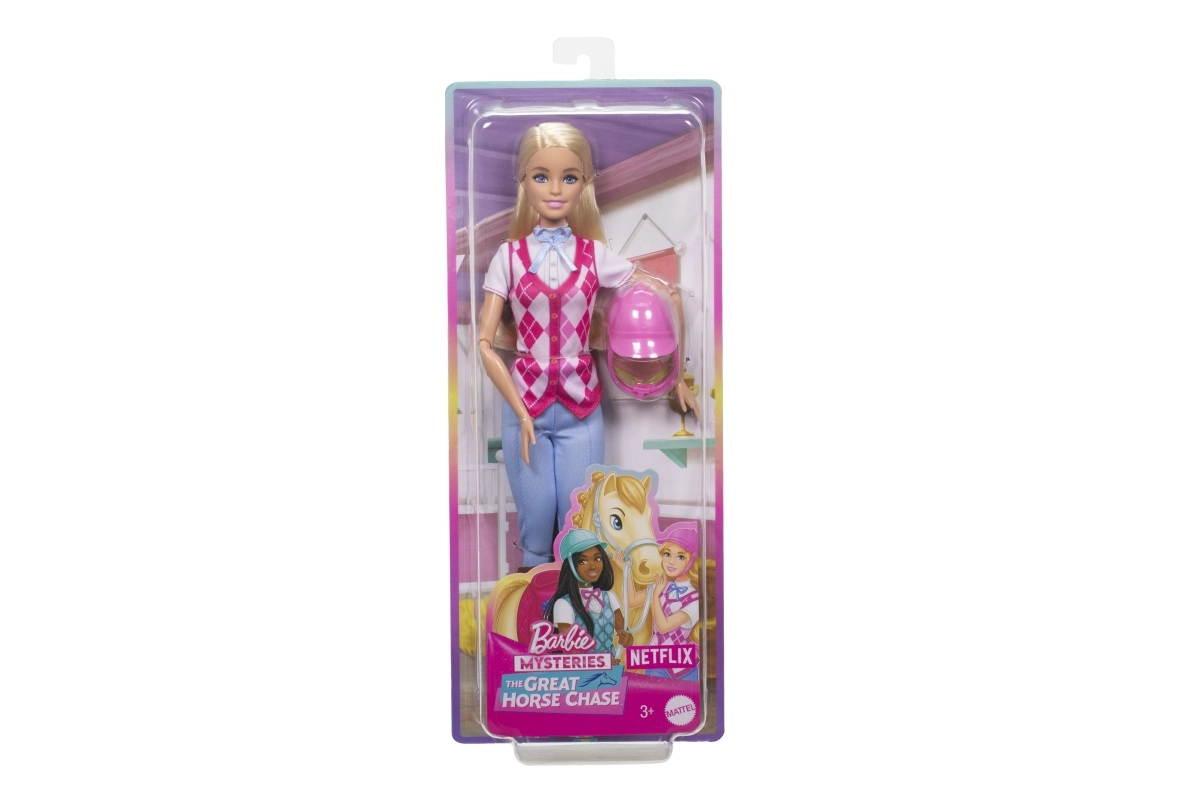 Visiems mažiesiems žirgų ir Barbės gerbėjams ši Malibu lėlė yra kaip tik tai, ko reikia. Ji apsirengusi stilinga jojimo apranga: rožine languota liemene, mėlynomis kelnėmis ir rudais jojimo batais. Barbė pasiruošusi nuotykiams šuoliuojant.