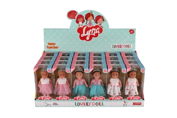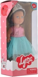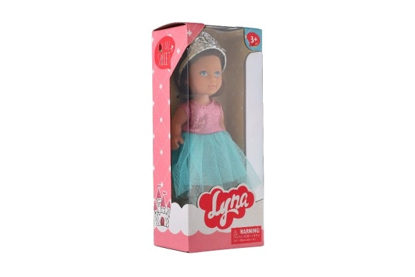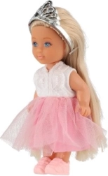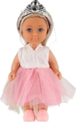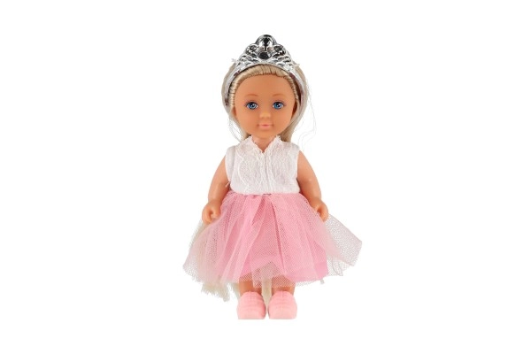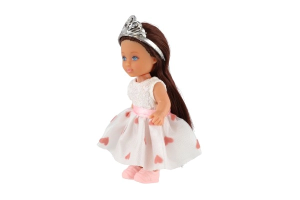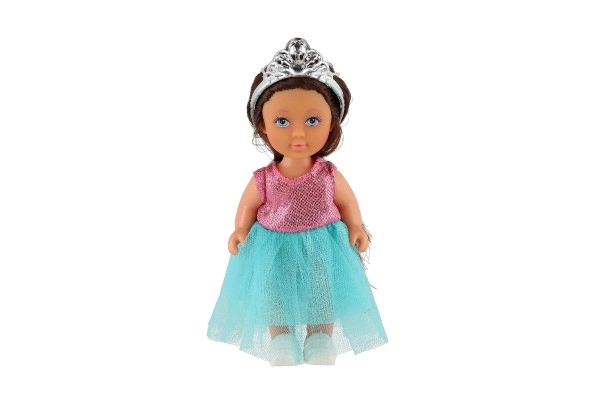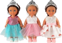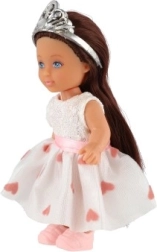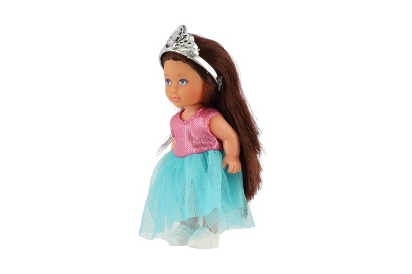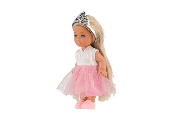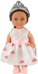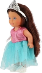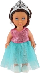 Lėlė su karūna ir ilgais plaukais, suteikiančiais dar daugiau žavesio.