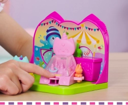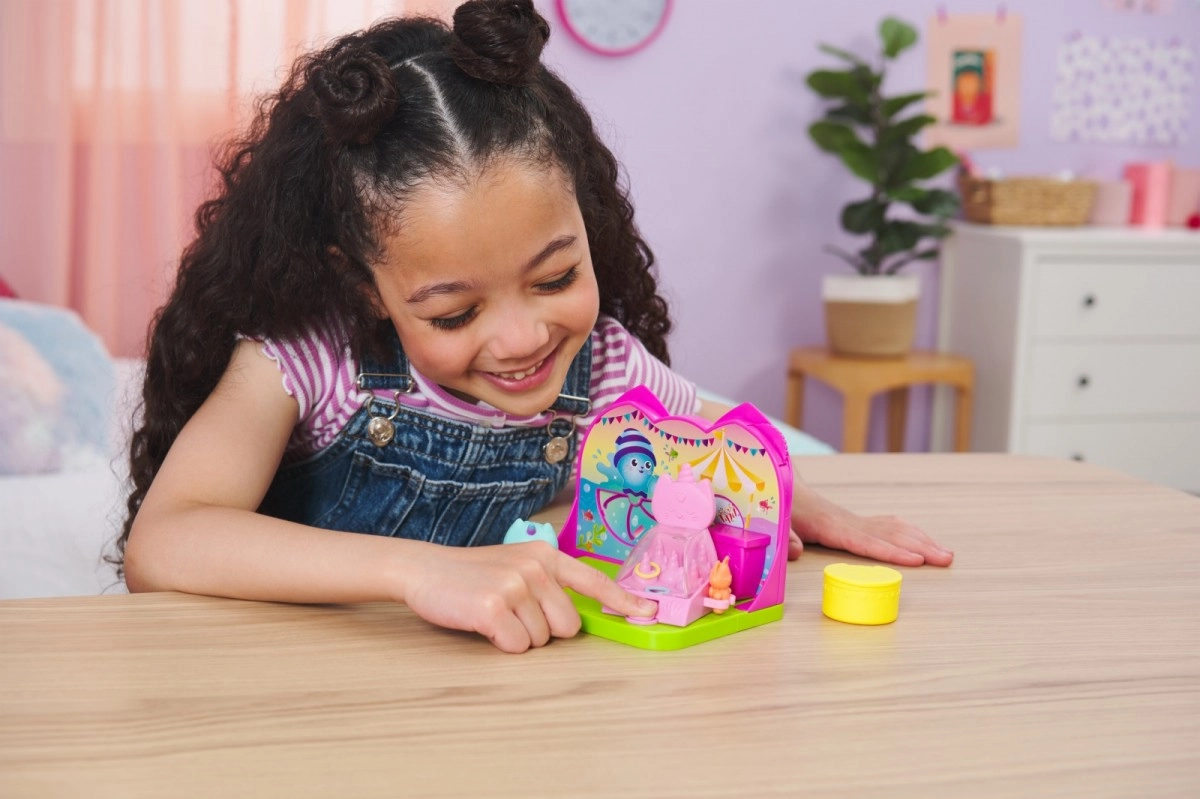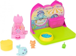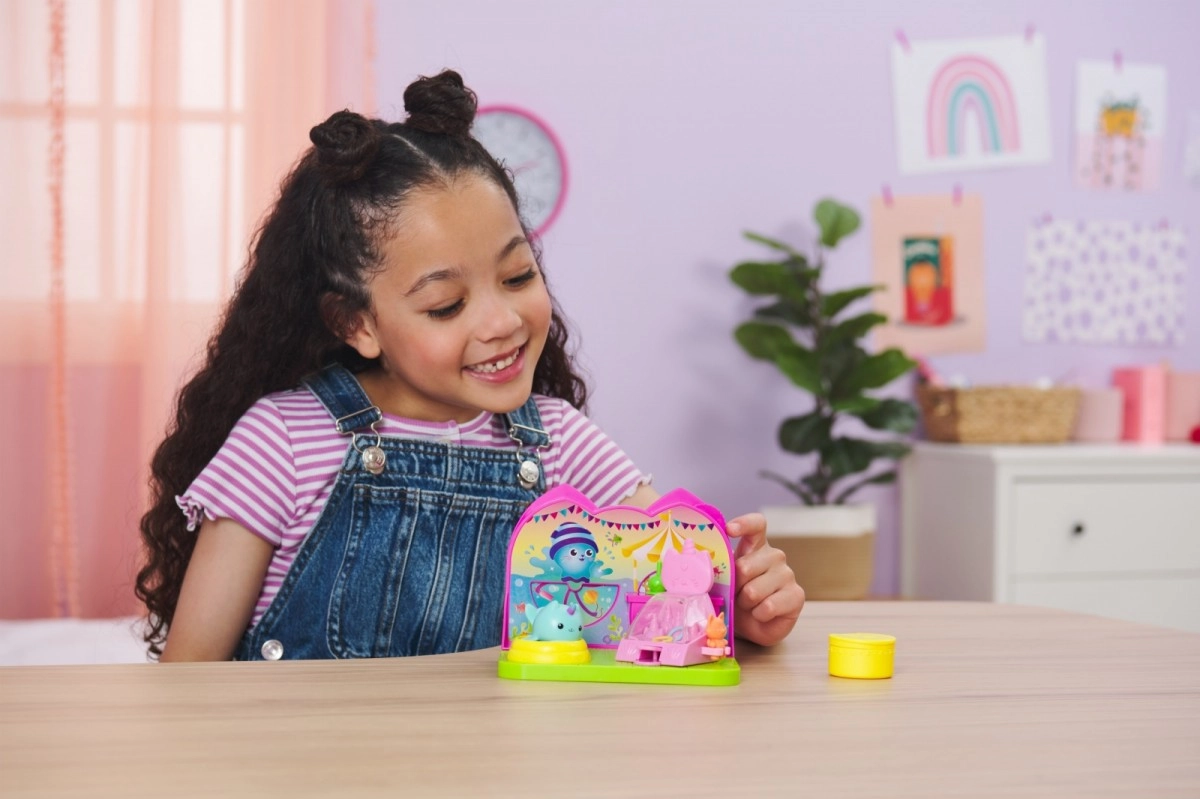Patirkite karnavalinį smagumą lėlių namelio kambaryje GABBY'S DOLLHOUSE! Jūsų laukia miela Narvalkočkės figūrėlė (apie 5 cm), kamuoliukų baseinas, žaidimas su žiedais, užkandžių stendas, besisukanti scena ir siurprizas iš Kačiukių siuntos. Puikiai lavina vaizduotę ir vaidmeninius įgūdžius vaikams nuo 3 metų.