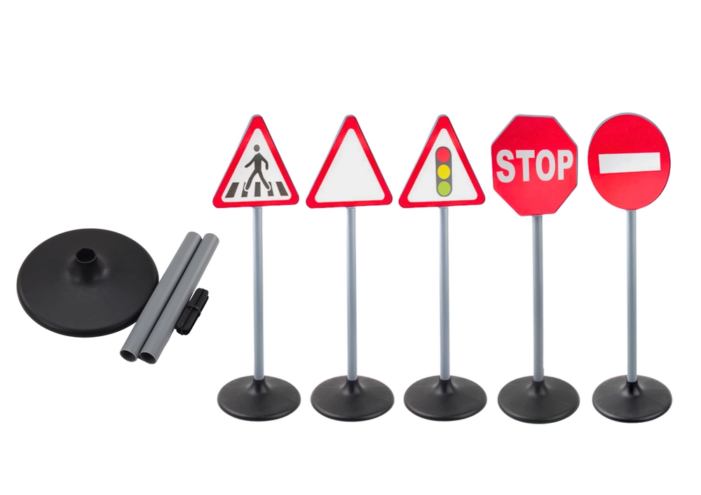 Šis universalus mokomasis kelio ženklų rinkinys padeda vaikams žaidimo forma suprasti saugaus elgesio kelyje principus. Dideli, aiškūs ir patvarūs ženklai su ryškiais simboliais palengvina eismo situacijų įsiminimą ir atpažinimą.