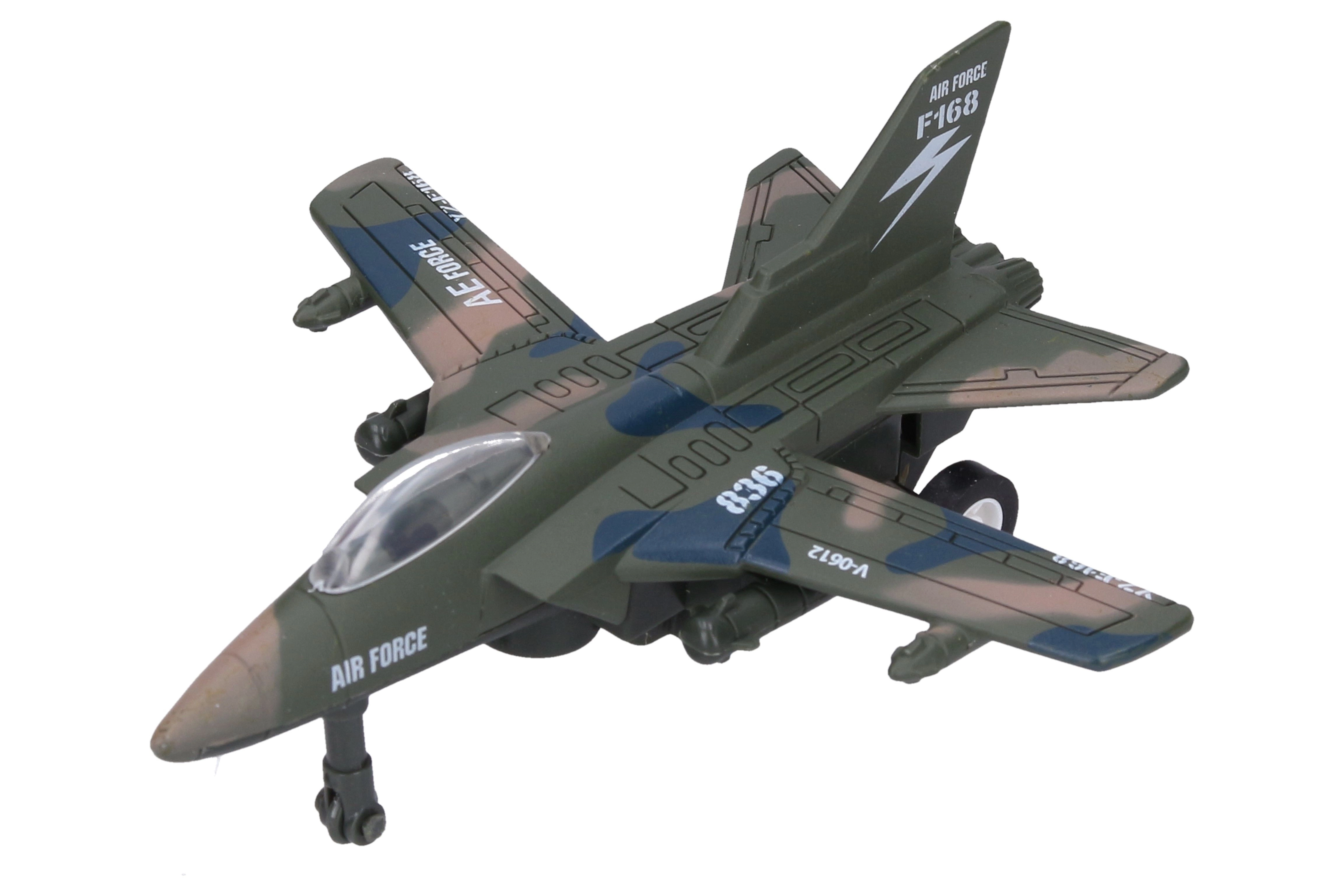 Tiesiog patraukite atgal, paleiskite ir naikintuvas šaus pirmyn. Puikus žaidimas be baterijų, idealu greitoms lenktynėms ir įsivaizduojamoms misijoms.