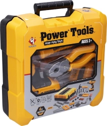 Šis vaikiškas įrankių rinkinys lagaminėlyje idealiai tinka kūrybiškam žaidimui ir rankinių įgūdžių lavinimui. Mažieji meistrai mėgausis realistišku žaidimu su gręžtuvu, turinčiu ON/OFF jungiklį ir šviesos efektus (3× AAA baterijos nepridedamos). Viskas tvarkingai sudėta į tvirtą lagaminėlį, todėl įrankiai visada po ranka ir kelionėje.