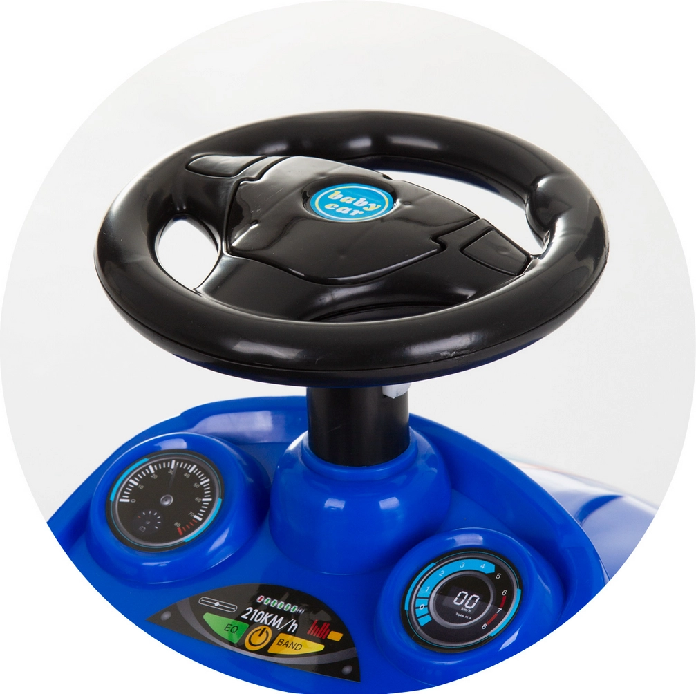 Tėvai įvertins praktišką daiktų dėžutę po sėdyne smulkmenoms ir žaislams. Pramogą užtikrina melodijos ant vairo (2× AA 1,5 V, nepridedama į pakuotę). Paspirtukas pagamintas pagal Europos žaislų saugos standartus.