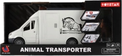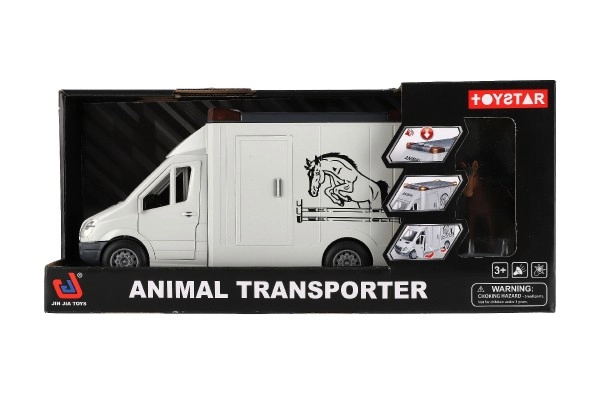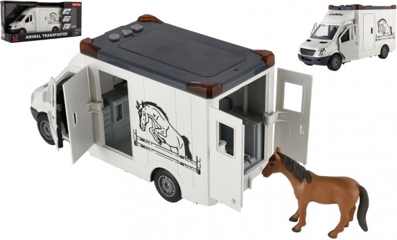 Transporto priemonė papuošta arklio grafika ir užrašu „ANIMAL“, kad atrodytų kaip tikras gyvūnų pervežimo sunkvežimis.