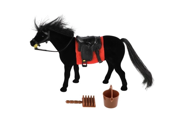 Plastikinis arklys su floko (pliušo) paviršiaus apdaila įneša tikroviškumo į žaidimų pasaulį. Priedai, tokie kaip balnas ir apynasris, leidžia kūrybiškai ir smagiai žaisti, o vaikai atranda arklio priežiūros žavesį. Tinka vaikams nuo 3 metų – saugus ir patrauklus pasirinkimas mažiausiems kolekcionieriams.