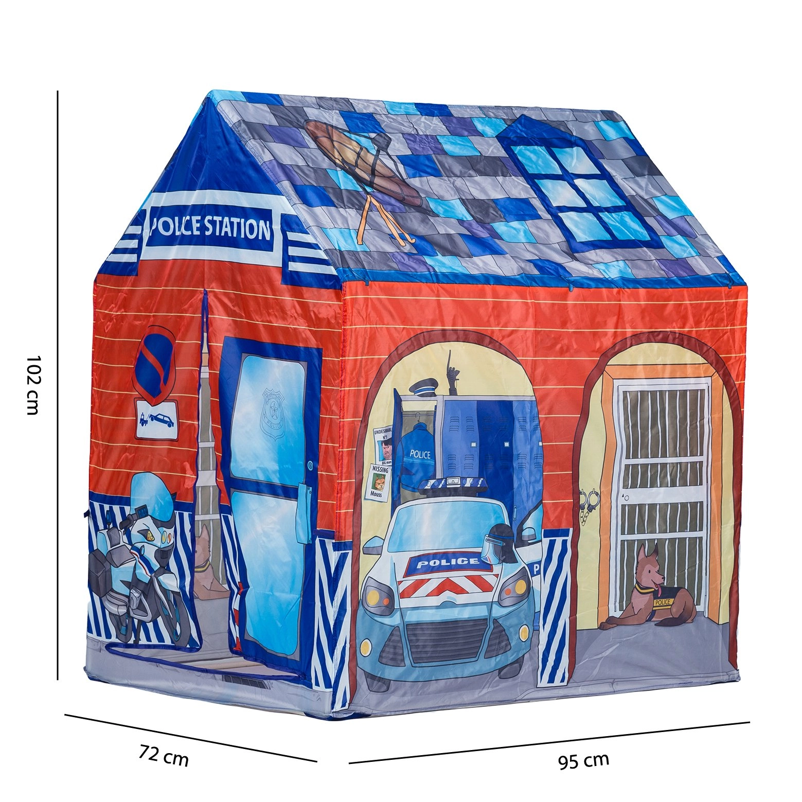 Vaikiška palapinė policijos stoties stiliumi pavers bet kurį kambarį ar sodą vieta, pilna fantazijos. Ji siūlo greitą ir lengvą surinkimą, lengvą ir saugią konstrukciją ir yra tinkama žaisti namuose ir lauke. Puikus pasirinkimas vaikams nuo 3 metų, mėgstantiems vaidmeninius policininkų žaidimus.