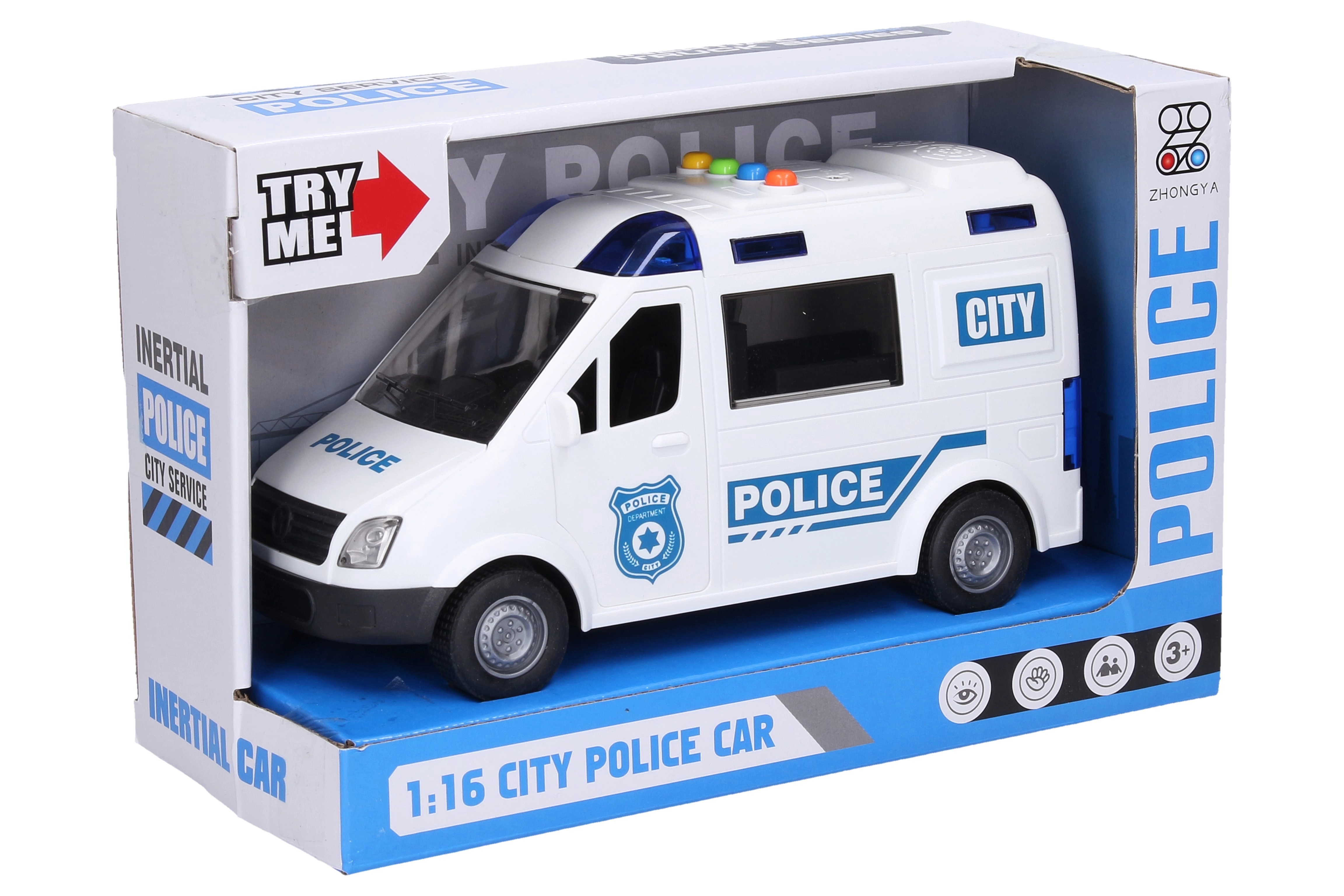 Šis policijos automobilis turi šviesos ir garso efektus, kurie įjungiami mygtukais ant kabinos. Vaikai galės mėgautis realistišku žaidimu dėl atsidarančių priekinių ir galinių durelių. Automobilį varo inercinė pavara, kuri užtikrina tolygų važiavimą.