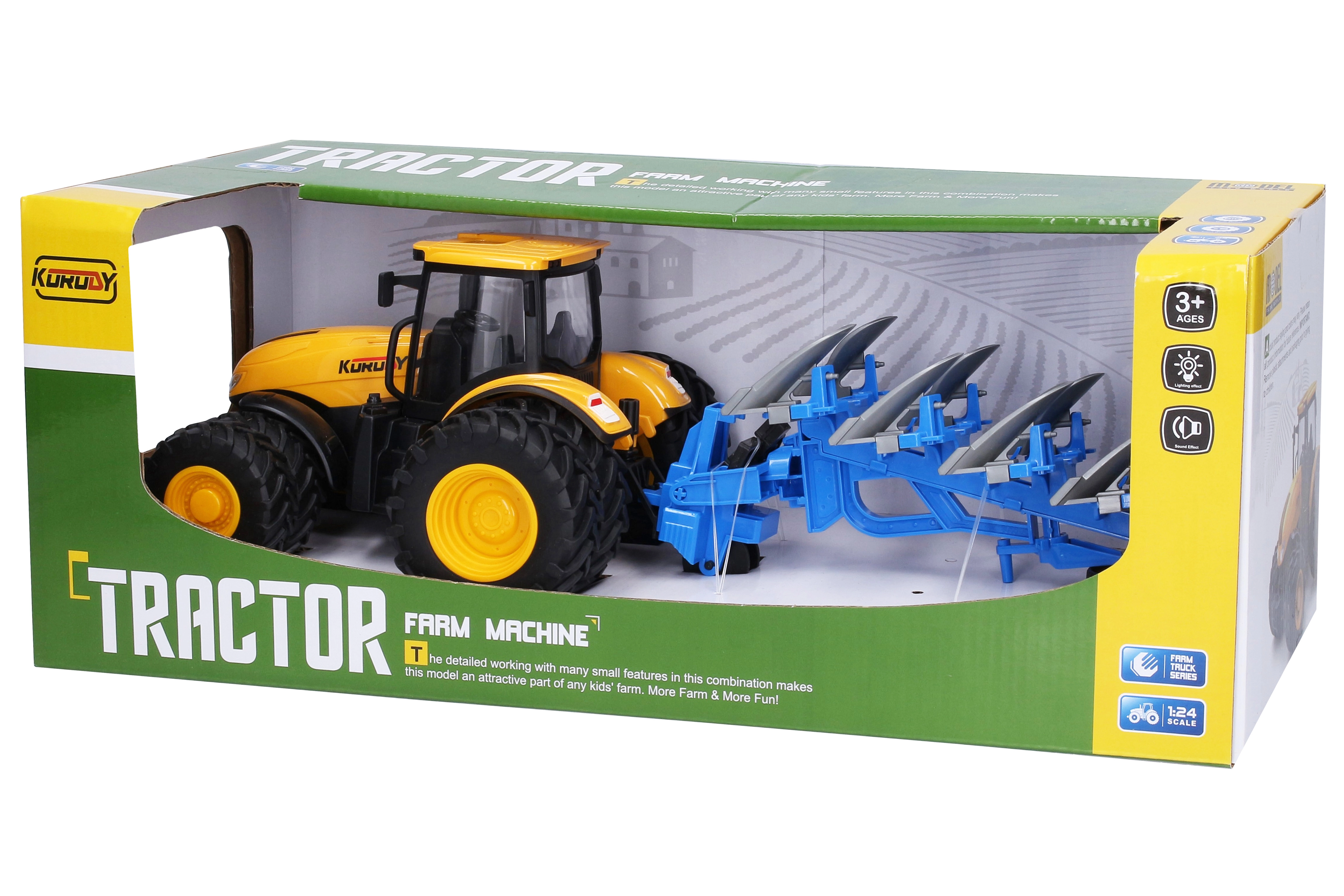 Traktorius išsiskiria precizišku atlikimu ir funkcionaliais priedais, todėl žaislas realistiškai imituoja tikrą transporto priemonę. Sukurtas su dvigubais ratais, kad būtų geresnis stabilumas ir judėjimas nelygiu paviršiumi.