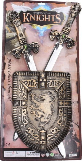- Pilnas rinkinys: 2× kardas + 1× skydas