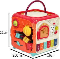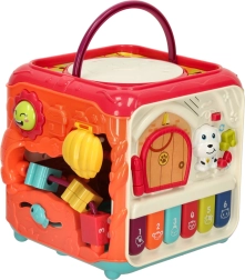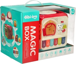 Spalvingas interaktyvus 6-i-1 BIBI-INN kubas suteikia valandų pramogų ir mokymosi viename. Kiekviena pusė siūlo naują veiklą – nuo vaikiško pianinuko su gyvūnų garsais, figūrų rūšiavimo, dantračių, skaitiklio iki žaidimo „pamaitink paukščiuką“ su magnetiniais vabalėliais. Skatina smulkiąją motoriką, koordinaciją ir spalvų, formų bei skaičių atpažinimą.