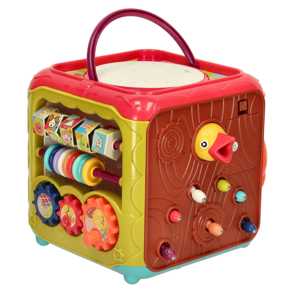 Mokomasis 6-i-1 kubas – tai linksmas centras patiems mažiausiems tyrinėtojams. Kiekviena sienelė slepia vis kitą veiklą, kuri stimuliuoja pojūčius ir lavina įgūdžius nuo 18 mėnesių amžiaus. Nuo realistiškų gyvūnų garsų pianinuke, atsidarančių durelių ir judančių elementų iki formų rūšiavimo ir besisukančių dantračių – vaikas mankština ir rankytes, ir galvą.