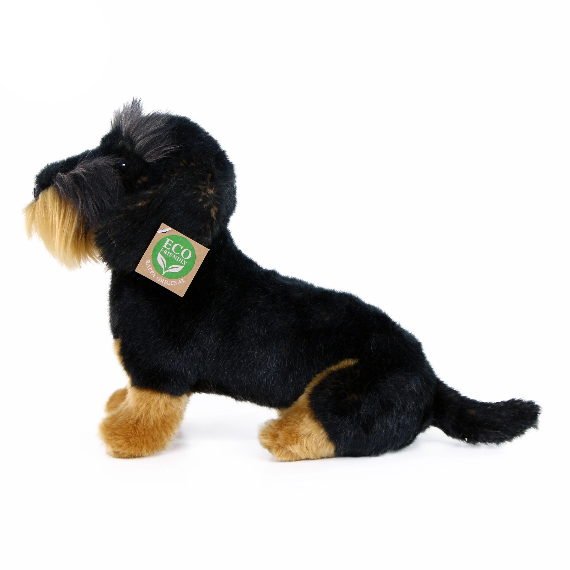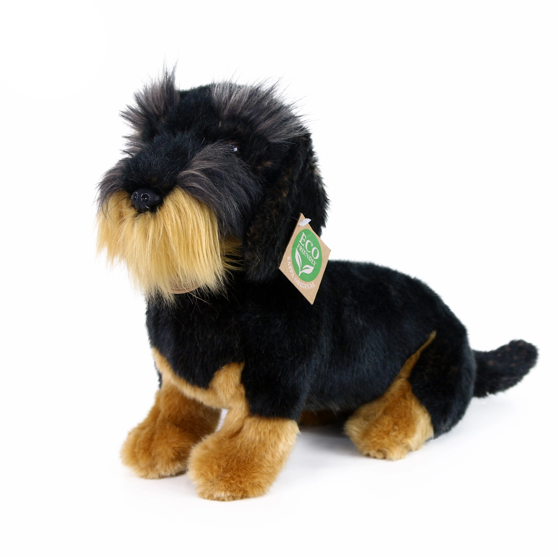 Mielas pūkuotas šiurkščiaplaukis taksas, 30 cm aukščio, pagamintas iš aukštos kokybės pliušo ir užpildytas ekologišku, perdirbtu užpildu iš PET butelių. Siūlo realistišką atlikimą, švelnų prisilietimui ir puikiai tinka kaip dovana vaikams ir šunų mylėtojams.