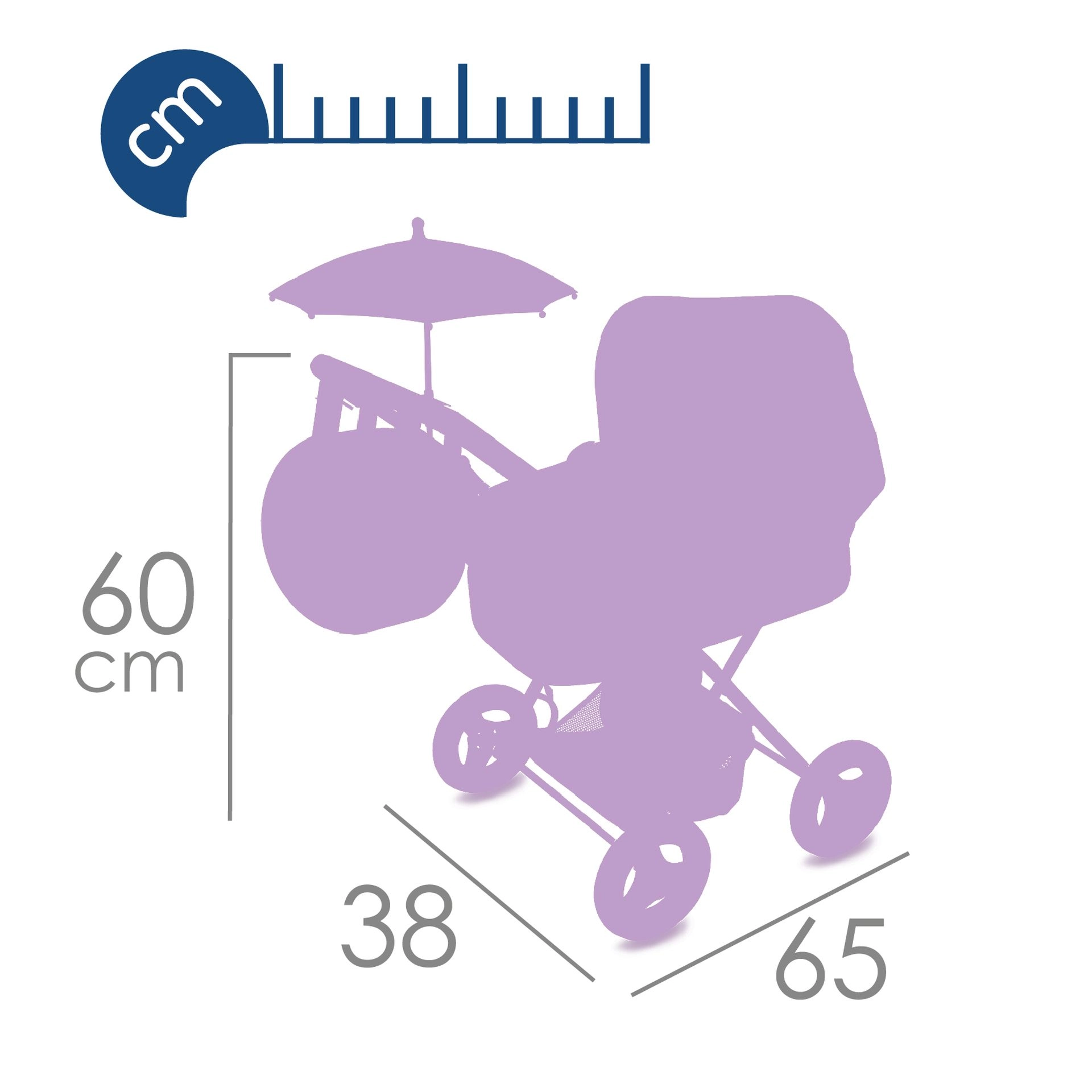 Praktiški priedai skatina vaizduotę žaidžiant: skėtis nuo saulės saugo lėlę, čiužinukas užtikrina patogumą, o apatinis krepšelis talpina visus būtiniausius daiktus. Preciziškas apdirbimas ir metalo, plastiko bei tekstilės derinys garantuoja patvarumą ir ilgaamžiškumą.