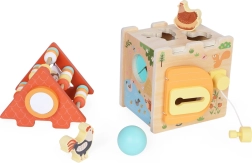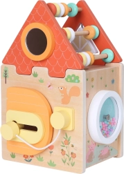 Šis žaislas puikiai tinka vaikų raidai, nes kiekviena namelyčio pusė slepia naują nuotykį – tai gali būti dėliojimas, stumdymas ar užraktų atrakinimas. Kaladė taip pat turi skaitliuką, kuris tarnauja kaip namelyčio stogas.