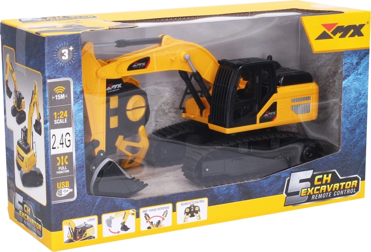 Realistiškas 26 cm ilgio RC ekskavatorius pradžiugins mažus statytojus ir technikos mėgėjus. Jį lengva valdyti, jis turi šviesos efektus ir funkcionalią strėlę, kurią galima kelti ir leisti mygtukais. Stabilus 40 MHz dažnis ir iki 15 metrų nuotolis užtikrina patikimą važiavimą namuose ir lauke.