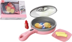 Praktiškame rinkinyje yra viskas, ko vaikams reikia patiekimui – keptuvė su dangčiu, lėkštutė, kečupas ir 4 maisto gabalėliai. Idealiai tinka vaikų virtuvei, skatina vaidybinius žaidimus, smulkiąją motoriką ir kūrybiškumą.