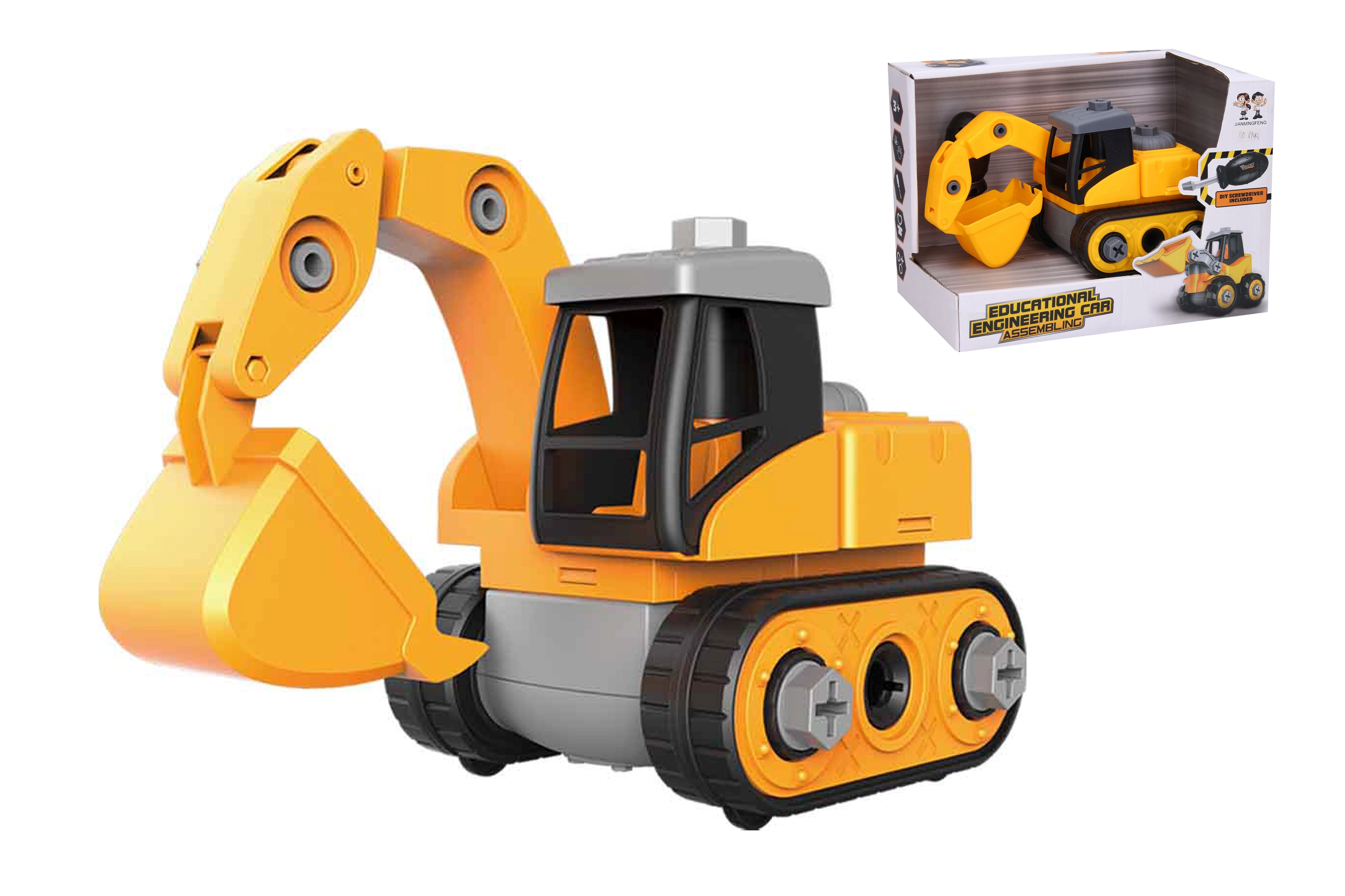 Sraigtuojamas ekskavatorius – puikus žaislas vaikams, kurie mėgsta techniką ir nori išbandyti darbą su įrankiais. Ši statybinė transporto priemonė pagaminta iš patvarios medžiagos ir lengvai surenkama bei išardoma naudojant pridėtą atsuktuvą.