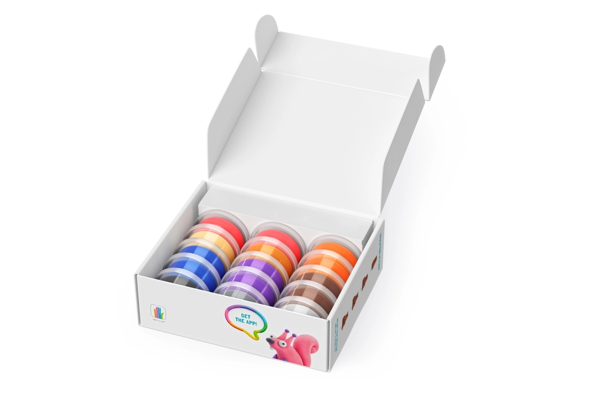 Plati 15 atskirų indelių spalvų paletė leidžia vaikams lengvai maišyti atspalvius ir modeliuoti visas rinkinio figūrėles bei kurti savo idėjas.
