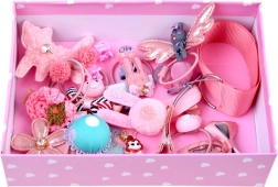 Šis nuostabus plaukų aksesuarų rinkinys idealiai tinka kiekvienai mažai damai, norinčiai suteikti savo plaukams elegancijos ir stiliaus. Jį sudaro 24 įvairūs elementai, leidžiantys kurti originalias šukuosenas įvairioms progoms, tokioms kaip gimtadienio šventės, karnavalai ar atostogų nuotykiai. Kiekvienas gaminys sukurtas atsižvelgiant į patogumą ir kūrybiškumą, todėl jis puikiai tinka ne tik šventėms, bet ir į mokyklą ar kasdieniams pasivaikščiojimams.