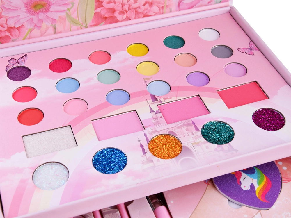 Suteikite savo dukrai galimybę atskleisti kūrybiškumą su šiuo vienaragio makiažo lagaminėliu. Jame rasite viską, ko reikia sukurti gražiam makiažui ir kartu saugiai apsaugoti mamos kosmetiką.