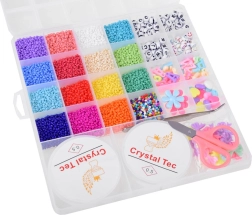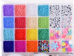 Šis universalus DIY rinkinys apima platų spalvotų karoliukų ir priedų pasirinkimą skaidriame dėkle su skyreliais. Vaikai gali kurti originalius papuošalus sau ir artimiesiems – nuo apyrankių su raidėmis iki žaismingų vėrinių su širdelėmis ir gėlytėmis. Organizatorius padeda palaikyti tvarką, todėl darbas yra švarus ir smagus.