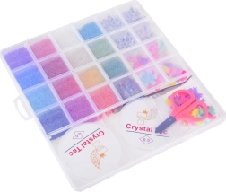 Skaidri dėžutė padeda tvarkingai išrūšiuoti visus karoliukus, todėl kuriant visada turėsite po ranka tinkamą atspalvį ir formą.