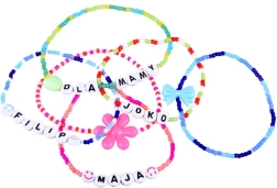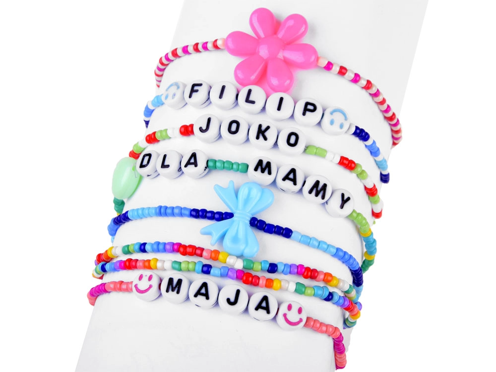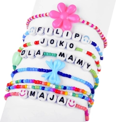 Kurti apyrankes ir vėrinius su vardais, inicialais ar žinutėmis padės raidiniai karoliukai ir spalvingi priedai.