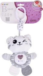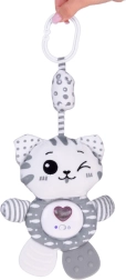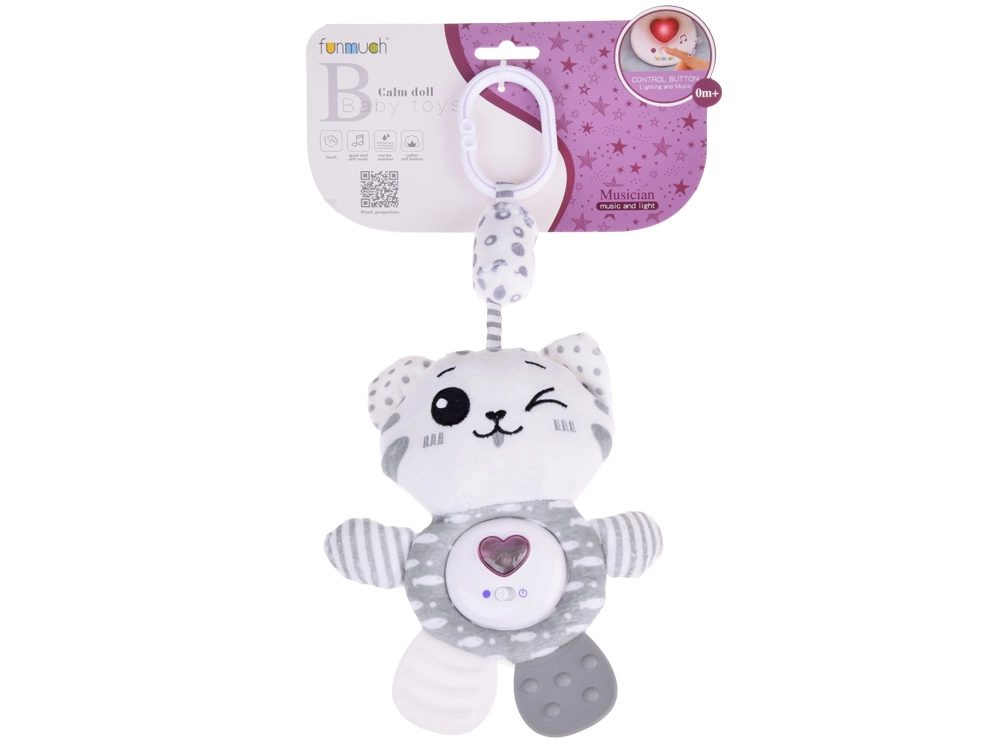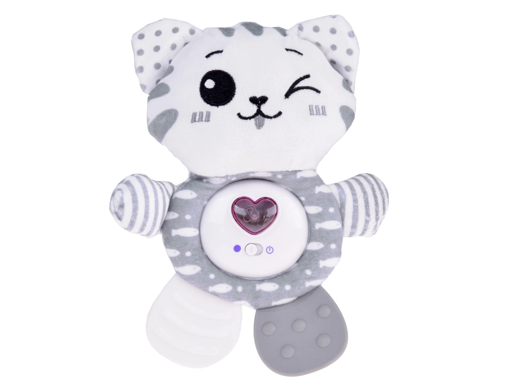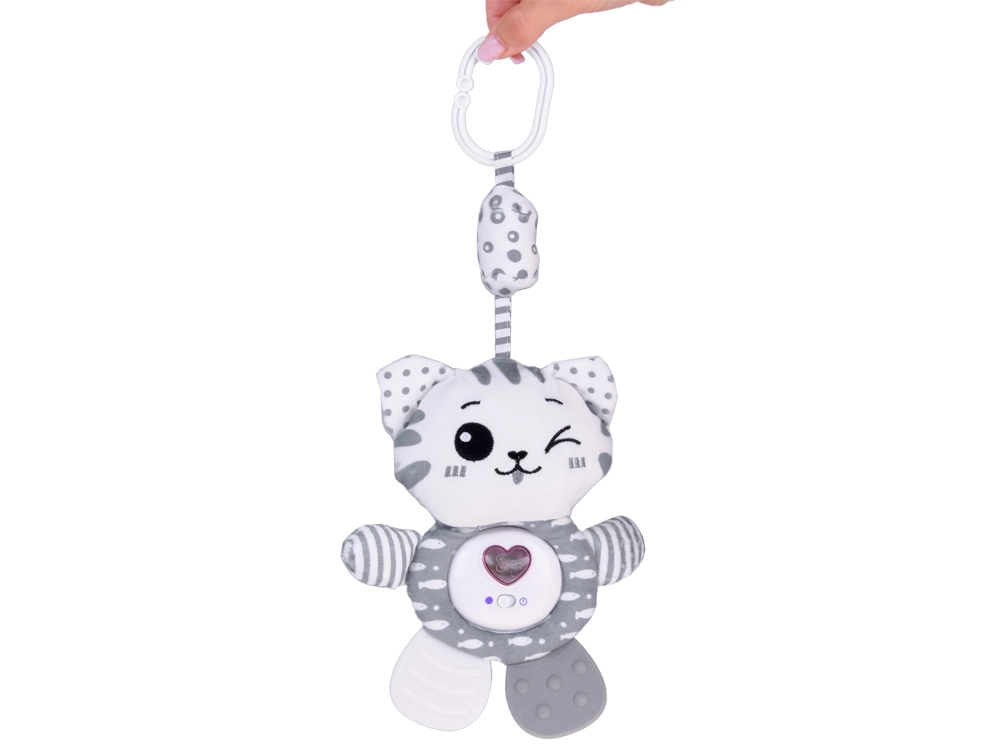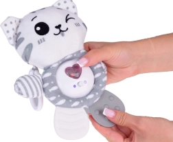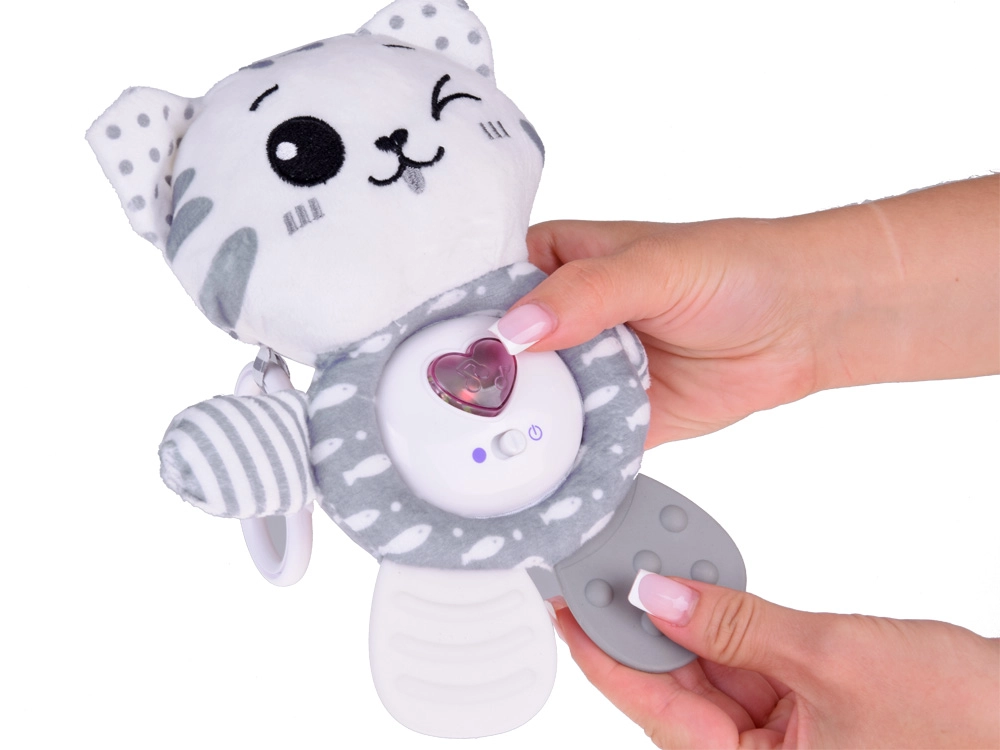 Mielas pliušinis kačiukas patiems mažiausiems sujungia net tris funkcijas: interaktyvias melodijas, švelnų barškėjimą ir šiurenimą bei minkštą kramtuką dantenų ramninimui dygstant dantukams. Malonus pilkai baltas dizainas, ypač minkšta medžiaga ir praktiška pakabinama kilpelė paverčia jį idealiu draugu lovytei, vežimėliui ar automobilinei kėdutei.