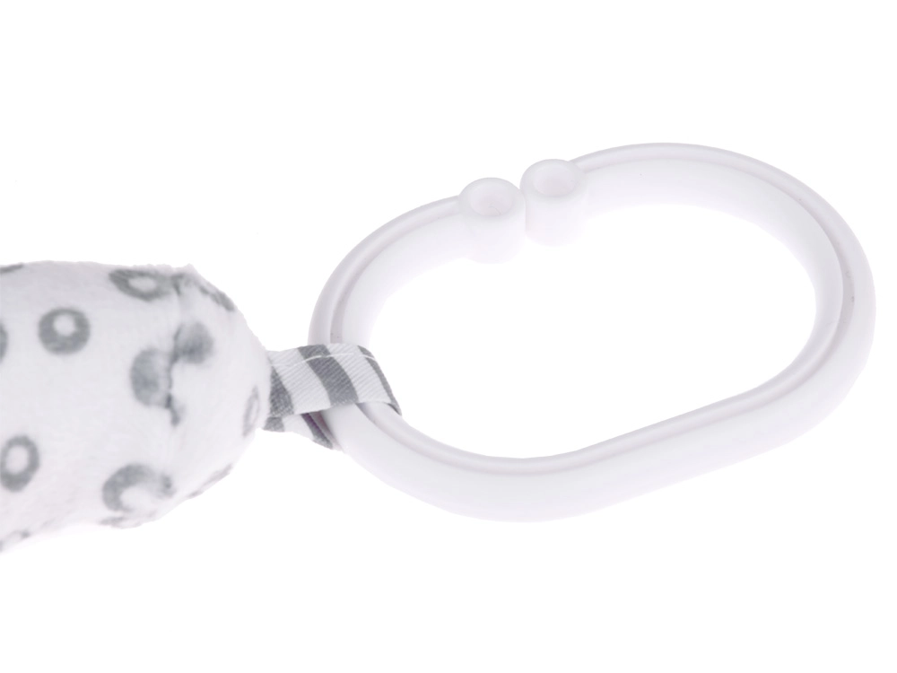 Praktiška kilpelė leidžia greitai pritvirtinti prie vežimėlio, automobilinės kėdutės ar žaidimų arkos, kad vaikas patogiai pasiektų žaislą.