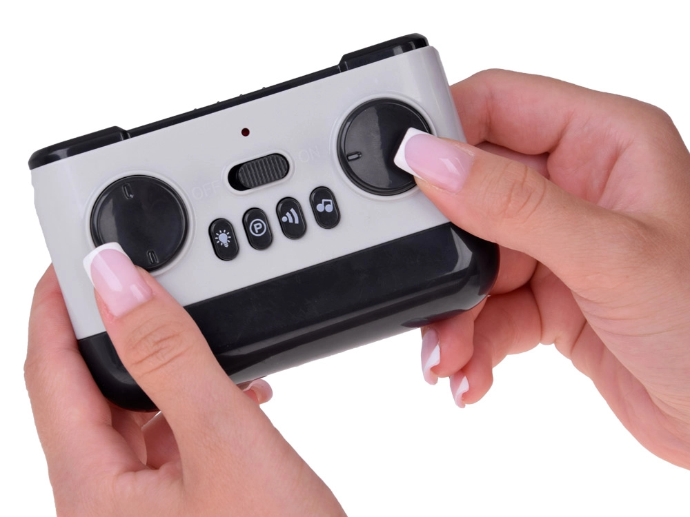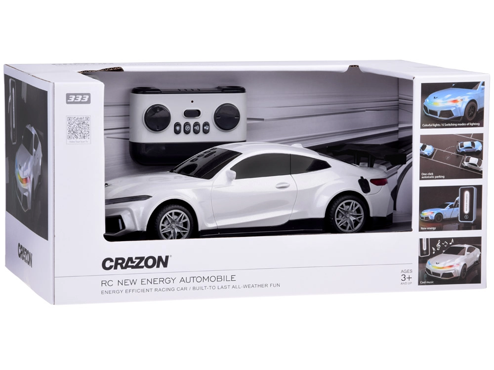 Patirkite realistišką važiavimą su sportiniu RC automobiliu, turinčiu perlamutrinę dangą ir galinį spoilerį. Intuityvaus valdiklio dėka vaikai lengvai valdys važiavimą pirmyn/atgal ir posūkius į dešinę/kairę. Atmosferą kuria spalvotos šviesos, garsinis signalas ir 4 muzikiniai motyvai.