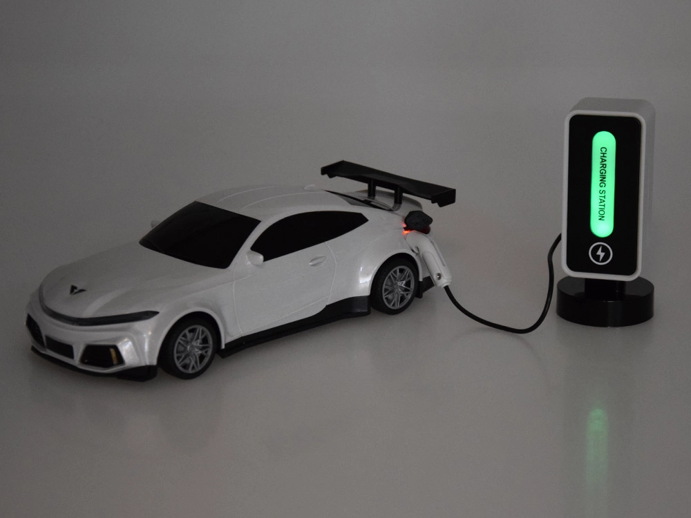 Stilingas elektrinis RC automobilis su specialia įkrovimo stotele suteiks valandas pramogų mažiesiems lenktynininkams. Jis siūlo nuotolinį valdymą, 5 apšvietimo režimus, automatinį parkavimą ir garso efektus. Patogi USB įkrovimo stotelė papildo automobilio energiją taip pat, kaip ir tikruose elektromobiliuose.