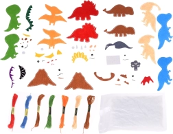 Šis pilnas veltinio siuvimo rinkinys leidžia vaikams žingsnis po žingsnio sukurti spalvingus dinozaurus – nuo paprasto veltinio detalių susiuvimo iki užpildymo ir papuošimo lipniais priedais. Baigtos figūrėlės puikiai tiks kaip vaikų kambario dekoracijos ir originali dovana, kuria vaikai didžiuosis.
