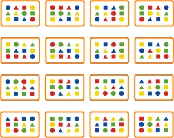 Vaikai dėlioja kaladėles taip, kad jos atitiktų kortelėje pateiktą pavyzdį. Pradeda nuo paprastesnių spalvinių raštų ir sklandžiai pereina prie geometrinių formų.