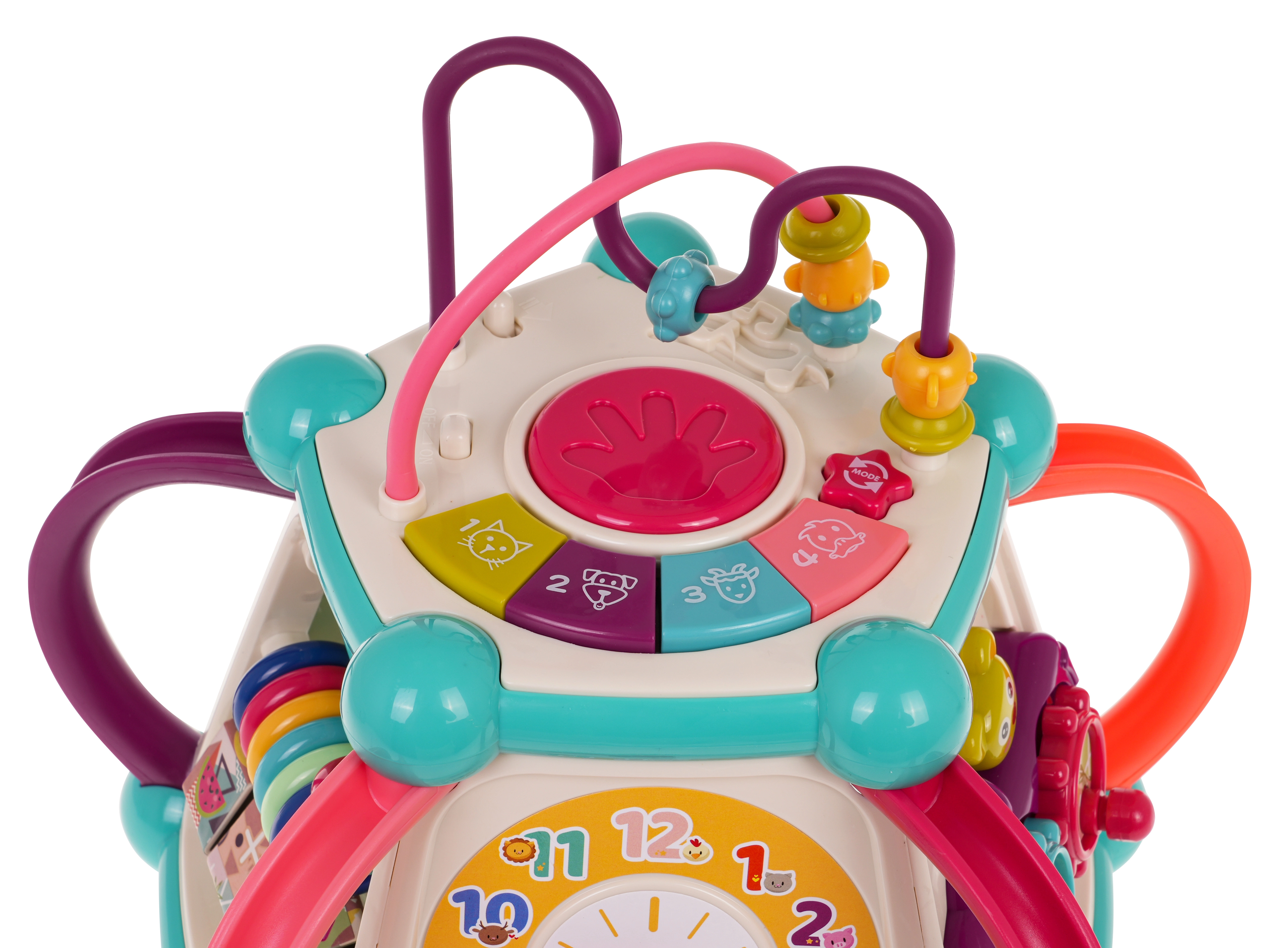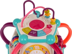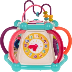 Dėl šviesos ir garso efektų (melodijos, būgnelis, gyvūnų garsai, barškėjimas ir spragsėjimas judinant elementus) žaislas stimuliuoja pojūčius ir motyvuoja kartoti tyrinėjimą. Vaikai lavina smulkiąją motoriką, loginį mąstymą, formų, spalvų ir skaičių pažinimą bei laiko suvokimą. Ideali dovana, auganti kartu su vaiku ir siūlanti daugybę žaidimo galimybių.