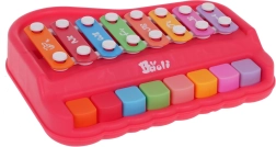 Muzikinis pianinas ir ksilofonas 2 viename skirti mažiausiems nuo 18 mėnesių padeda lavinti ritmą ir smulkiąją motoriką. Pagaminta iš kokybiško plastiko ir metalo, pasižymi ryškiomis spalvomis, o komplekte yra 2 lazdelės patogiam grojimui ir garsų tyrinėjimui.