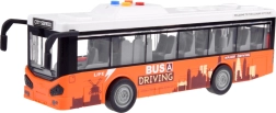 Šis autobuso modelis pagamintas iš kokybiško plastiko, daug dėmesio skiriant detalėms. Jis turi mechaninį pavaros mechanizmą: pakanka pastumti arba patraukti atgal, paleisti ant lygaus paviršiaus ir autobusas pats pajudės. Guminės padangos užtikrina geresnį sukibimą su danga.