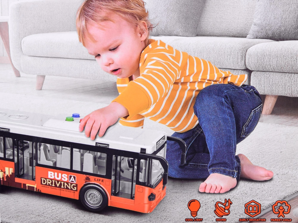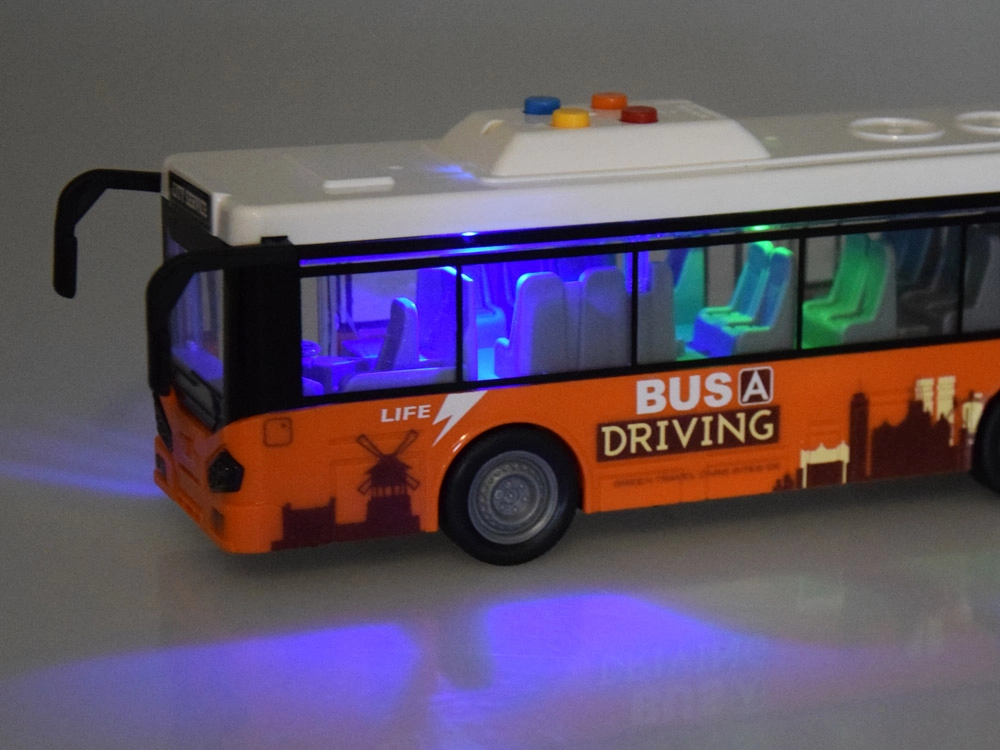 Ant autobuso stogo yra keturi mygtukai, skirti garso ir šviesos funkcijoms: geltonas mygtukas – sustojimo ir durų atidarymo garsas, mėlynas mygtukas – variklio užvedimo garsas, raudonas mygtukas – signalas, oranžinis mygtukas – atbulinės eigos garsas. Garsus lydi spalvotos mirksinčios šviesos autobuso salone. Žaislas maitinamas 3 x AG13 baterijomis (įtrauktos į pakuotę).