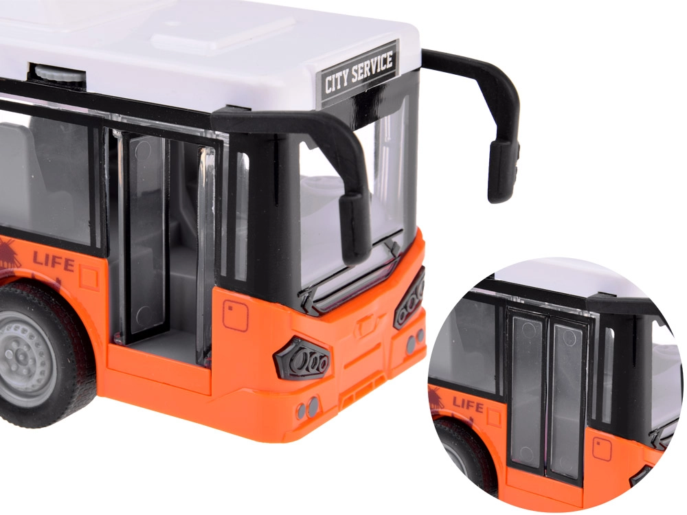Ypatinga atrakcija – atidaromos durys, kurias galima valdyti sukamąja rankenėle virš durų. Bendras autobuso vaizdas yra labai realistiškas ir suteiks daug džiaugsmo mažajam vairuotojui.