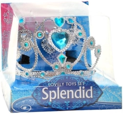 Sidabrinės spalvos karūna puošta mėlynais akmenimis, kurie suteikia elegantišką išvaizdą, įkvėptą Elsos magiško pasaulio.