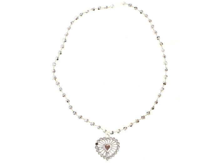 Vėrinys su širdelės formos pakabuku ir smulkiomis dekoratyviomis detalėmis, suteikiantis žavesio bet kokiam princesės įvaizdžiui.