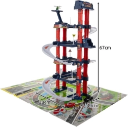 Interaktyvų liftą galima pritvirtinti iš kairės arba dešinės, jis valdomas spalvotais mygtukais (aukštyn/žemyn), jį lydi mirksinčios šviesos ir garso efektai (sirenos, signalai, darbo mašinos), kurie skatina vaikų vaizduotę. Rinkinyje yra didelis žaidimų kilimėlis su miesto žemėlapiu, ant kurio pastatysite garažą ir išdėliosite ženklus, taip pat 2 automobiliukai ir sraigtasparnis.