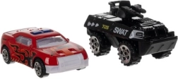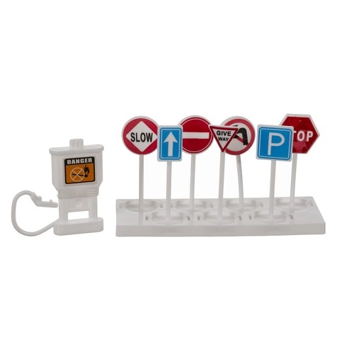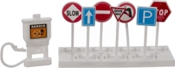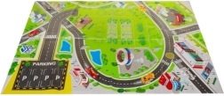 Rinkinyje yra detalus kilimėlis su miesto planu, kelio ženklai, 2 automobiliukai ir sraigtasparnis – paruošta iškart žaisti.