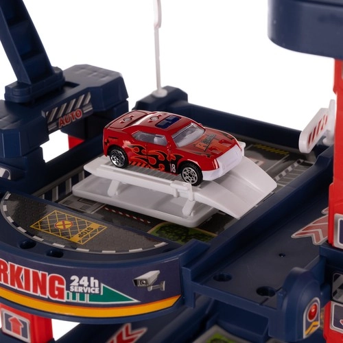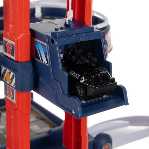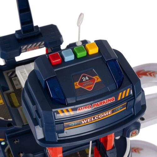 KRUZZEL keturių aukštų garažas išsiskiria moderniu dizainu, tvirta konstrukcija ir apgalvotomis detalėmis realistiškam žaidimui. Kiekviename aukšte yra turėklai, saugantys nuo automobiliukų iškritimo, ant stogo – sraigtasparnių aikštelė, o visoje trasoje netrūksta kelio ženklų. Plačios, idealiai suformuotos rampos leidžia sklandžiai nusileisti nuo aukščiausio lygio iki apačios.